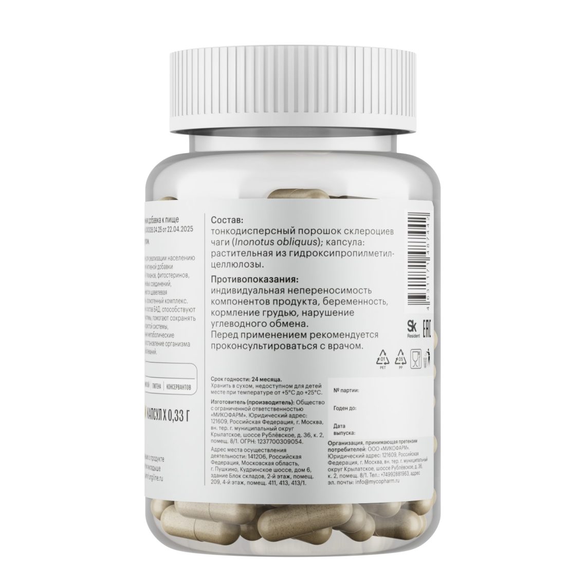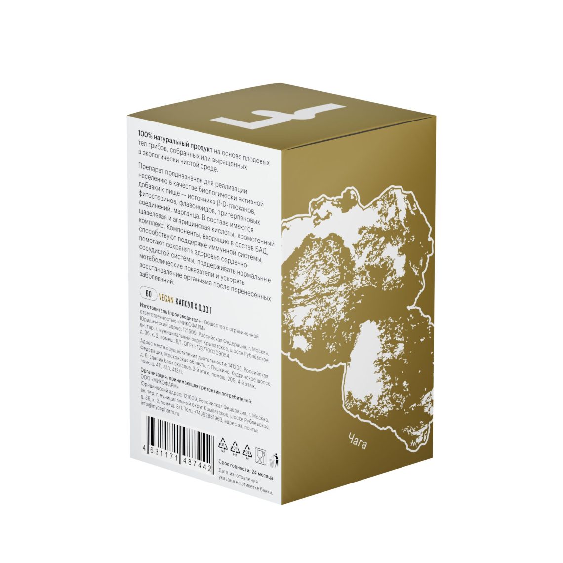 Чага (лат. Inonotus obliquus), или березовый гриб, — настоящий король лекарственных грибов, известный на Западе как «русский суперфуд». Этот гриб богат бетулином, полифенолами и особыми хромогенными комплексами, которые придают грибу его темный цвет и обладают сильными антиоксидантными и противовоспалительными свойствами. Прием чаги помогает повысить иммунитет и усилить сопротивляемость организма к различным патогенам и может быть особенно полезен в сезон простудных заболеваний. Особенно полезна при гастрите, язве и других воспалительных заболеваниях ЖКТ